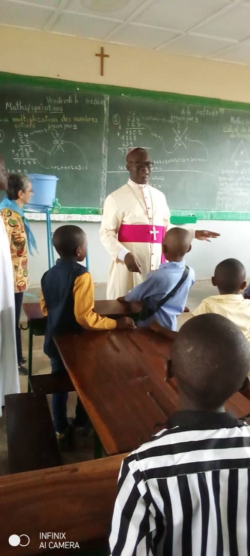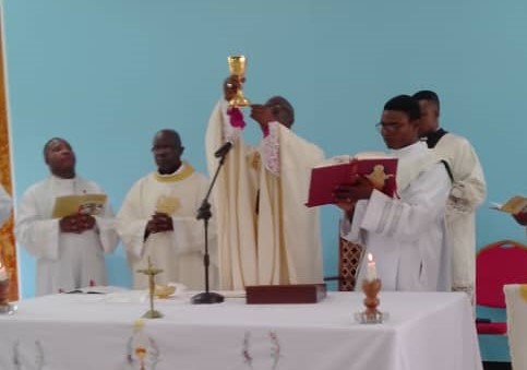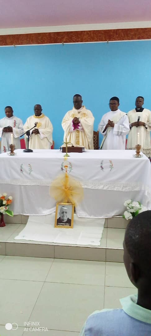 La celebración del aniversario del P. Domingo en Lubumbashi estuvo marcada por la visita-sorpresa del Sr arzobispo D. Fulgence Muteba , que quiso acompañarnos en este día, visitar la escuela «Nyumba Yetu» y celebrar la Eucaristía con nosotros. Nos avisó de su visita el día anterior, así que tuvimos que echar mano de la improvisación. Pasó por todas las aulas saludando a alumnos y profesores y le regalamos la tradicional cabra (típico en la RDC). Tuvimos la misa y después un rato de convivencia. La comida de este año se suprimió y el dinero cotizado para ello lo enviamos para ayudar a los refugiados del este del país, que están sufriendo a causa de la guerra.
